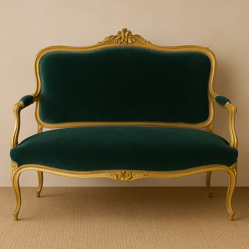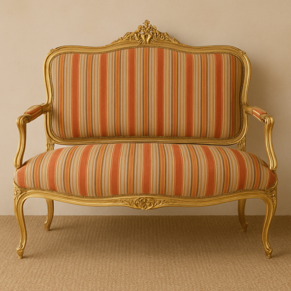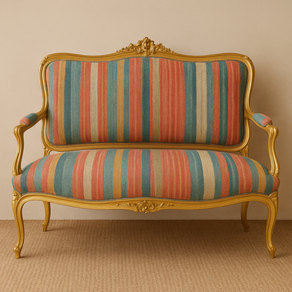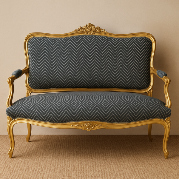 Ce canapé Napoléon III en bois doré retrouvera tout son éclat grâce à notre travail de restauration du bois et des dorures, réalisé selon les techniques traditionnelles. Nous vous proposons le châssis dans sa plus belle lumière, et, avec l’aide d’un tapissier agréé que nous pouvons vous recommander, il pourra recevoir la garniture et le tissu de votre choix. Ainsi, il retrouvera toute sa splendeur, alliant authenticité et personnalisation. Les propositions de tissus présentées vous permettent d’imaginer dès aujourd’hui son intégration harmonieuse dans votre intérieur.